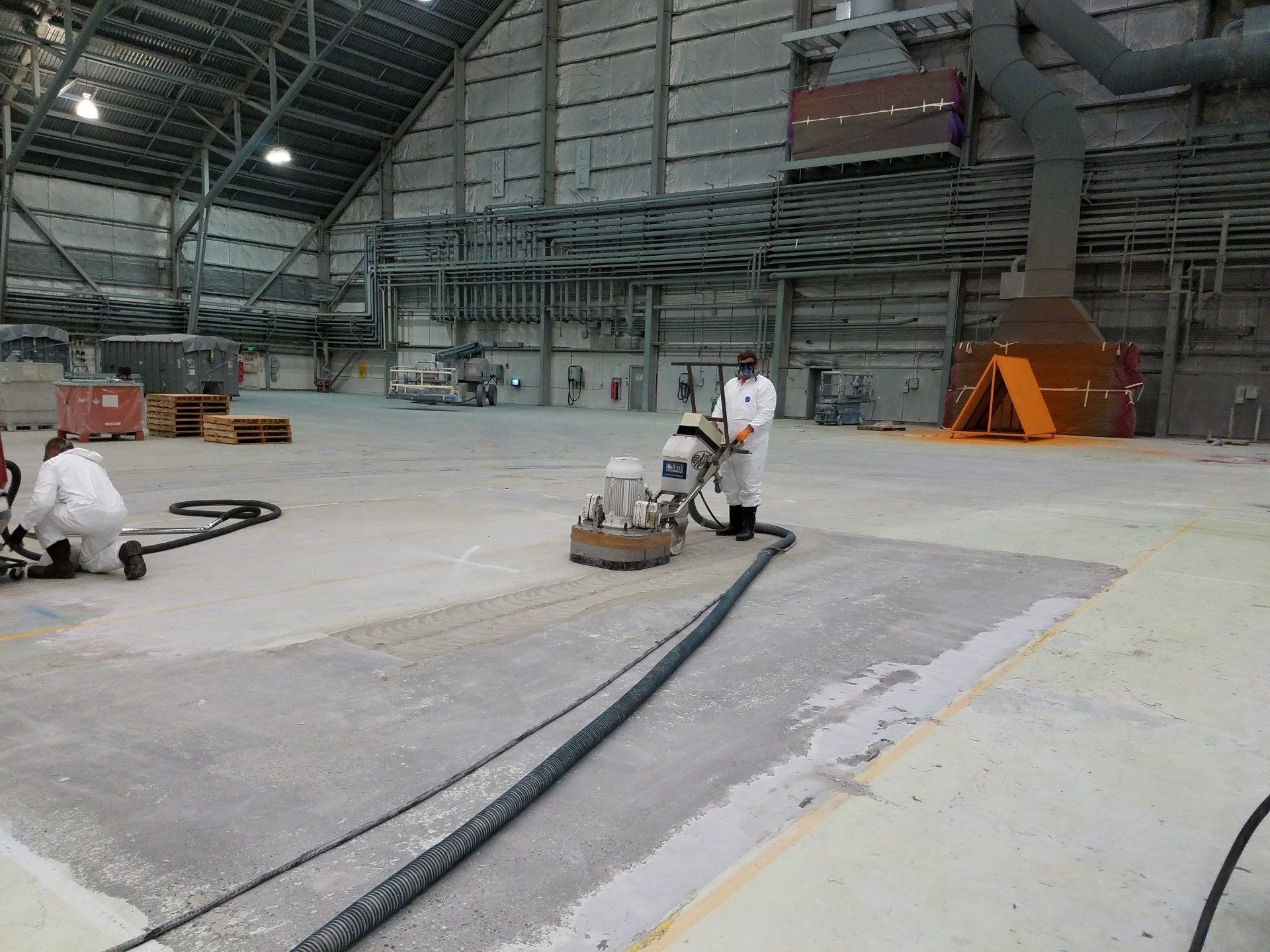 Diamond grinding is typically used for removing thin coatings.  Diamond grinding is achieved by using horizontally rotating disks to level, clean, and smooth out imperfections on the concrete surface.  This method of preparation is used for thin applications and sealers.  Diamond grinding concrete floors can be a stand-alone procedure or in conjunction with shotblasting or scraping.